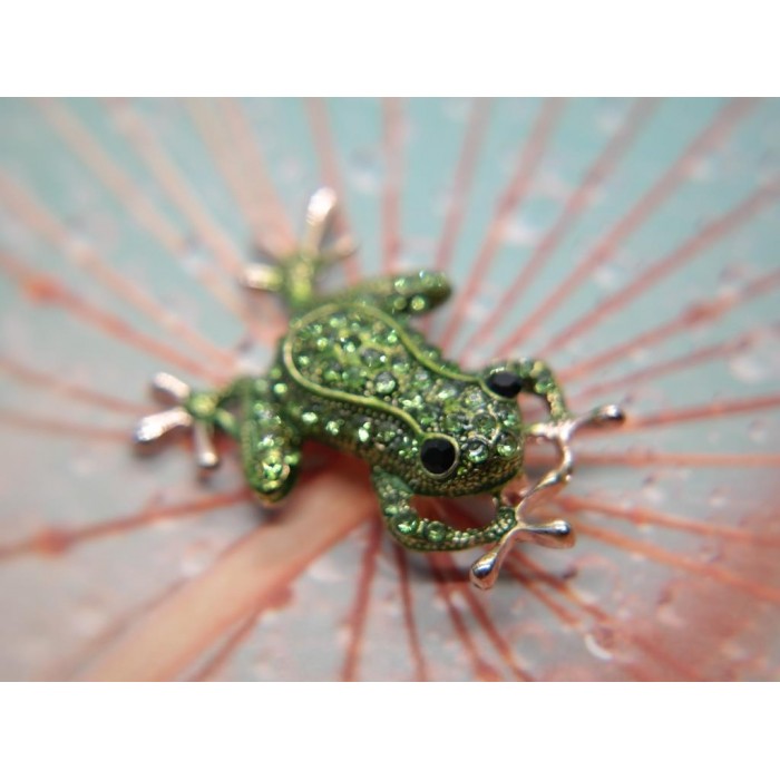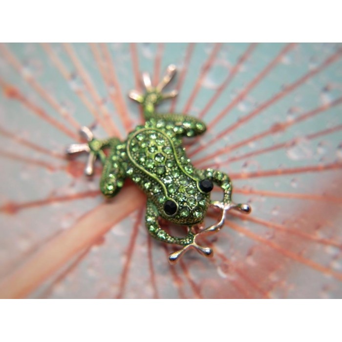 Broszka Szmaragdowa Żabka z Kryształami – magiczna zielona biżuteria