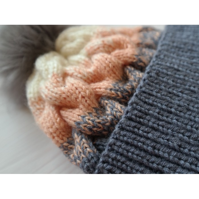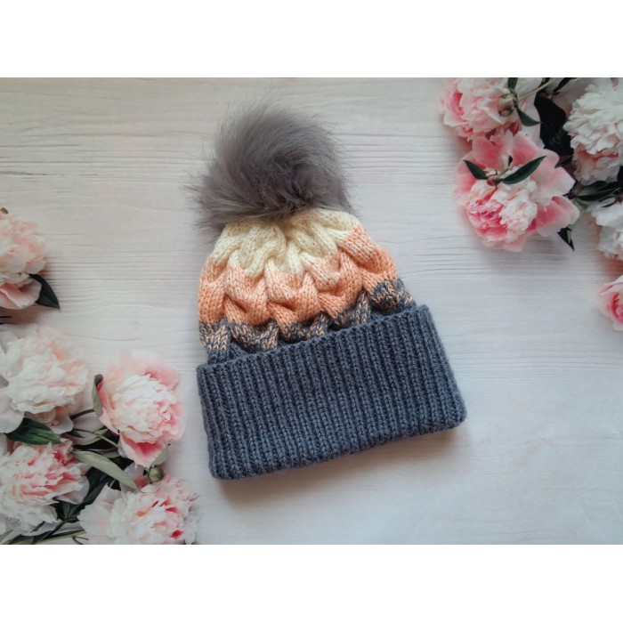 Ręcznie robiona czapka „Brzoskwiniowy Puch” z pomponem