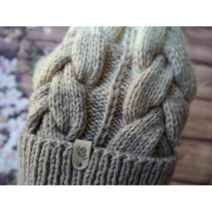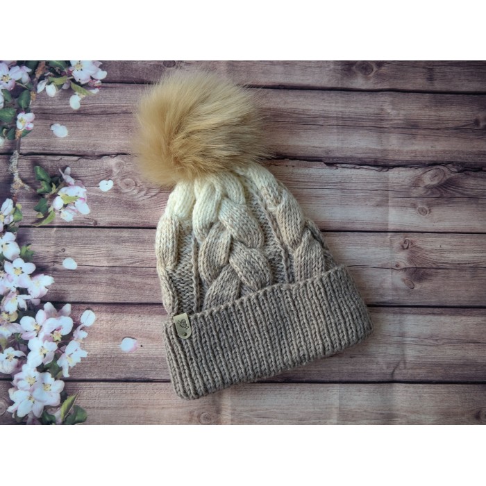 Ręcznie robiona czapka „Karmelowa Chmurka” z pomponem