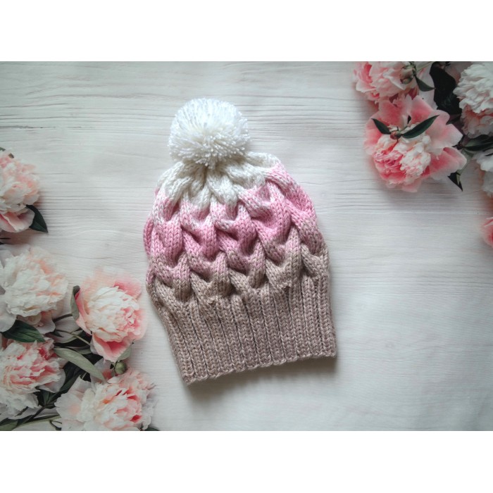 Ręcznie robiona czapka „Różowa Mgiełka” z pomponem