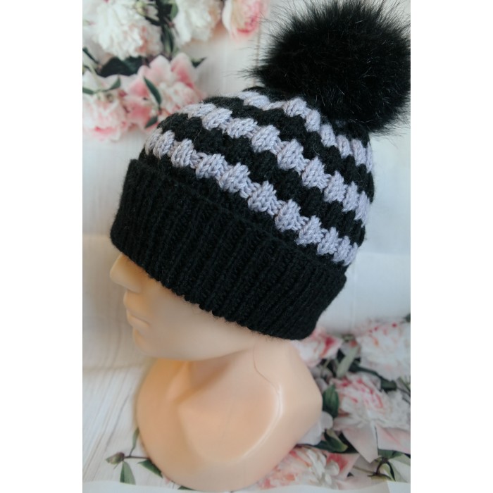 Tagi: czapka zimowa, czapka z pomponem, rękodzieło, czapka wełniana, bambusowa włóczka, prezent handmade, czapka dla niej i dla niego, uniseks czapka, kontrastowa czapka