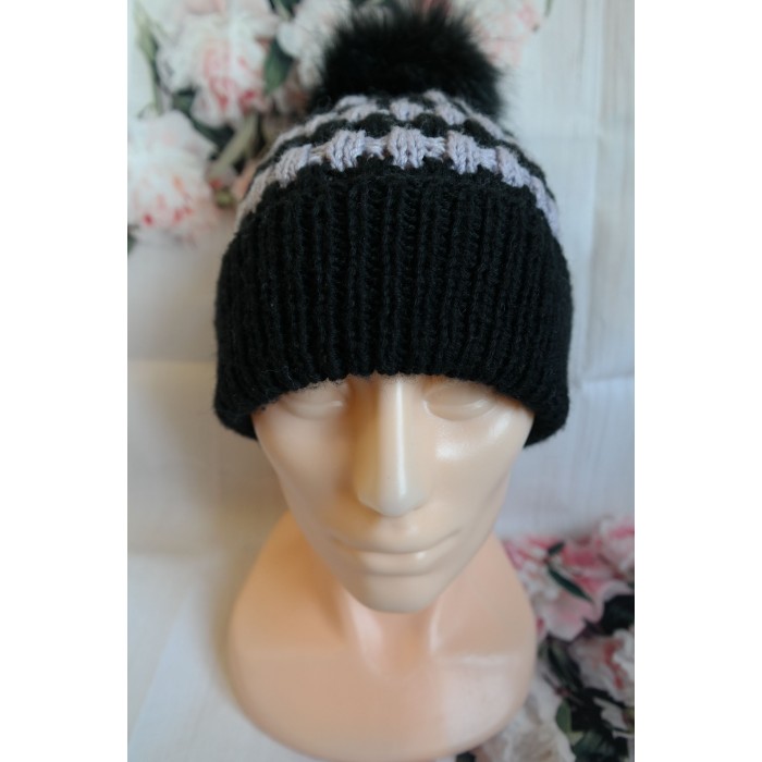 Czapka „Szach i Puch” z pomponem ze sztucznego futra